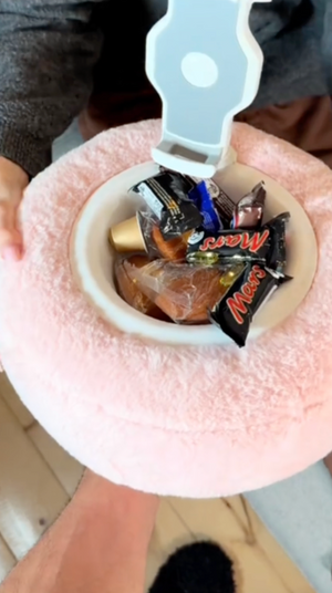 il suffit de remplir le coussin de snacks, d'y caler votre téléphone portable et de vous détendre.
